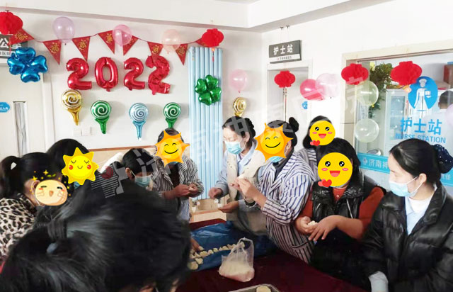 梅花绽放迎春开,佳节欢乐吉祥来。元旦来临之际,为营造新年喜庆、祥和的节日气氛,让住院病人体会亲自动手的快乐和温馨如家的情谊,并向元旦期间工作在第一线的医院职工表示诚挚的谢意,使大家度过一个轻松活泼、欢乐祥和的元旦佳节,12月31日,济南神康医院举办元旦迎新跨年活动,医护人员共同包饺子,送祝福,迎新年。
